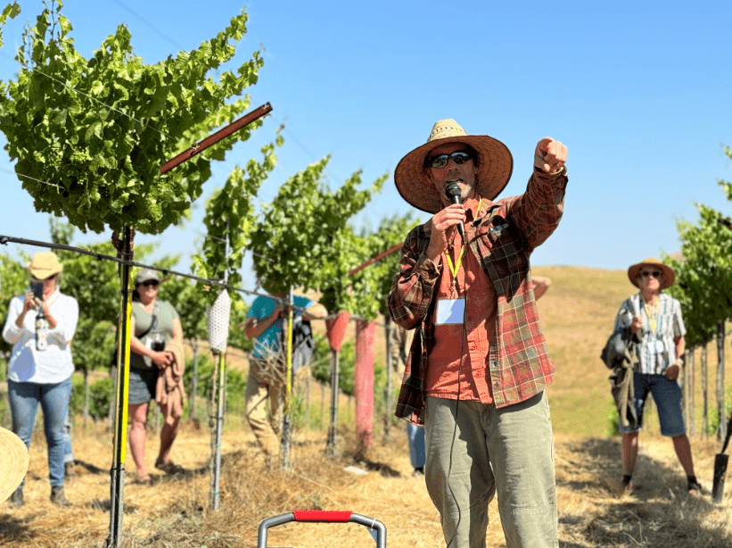 Kelly Mulville’s path to revolutionizing viticulture began with raptors and falconry. Growing up in El Paso, Texas, he raised hawks as a child. Reading Rachel Carson’s Silent Spring at 14 devastated him – he realized agriculture was destroying the birds he loved. “I’ve been depressed ever since,” he says. That compassion for the natural world became his life’s work: transforming agriculture from one of the planet’s most destructive forces into a method for repairing ecosystems. For 25 years, Kelly has combined viticulture experience with holistic management to design ecologically, socially, and economically sound farming practices that profitably restore biodiversity – usually involving considerable help from livestock. His breakthrough came in Sonoma County between 2008 and 2010, using electric fencing to allow sheep to graze during the growing season – eliminating tillage, reducing water use by 90%, and increasing yields by 1,300 pounds per acre. When Kelly joined Paicines Ranch in 2014, he had the rare opportunity to design a vineyard from scratch. “Really what I want to do is not see how many farm animals I can have on this place, but to see how much biodiversity that is native to this spot we can get to return,” he explains.