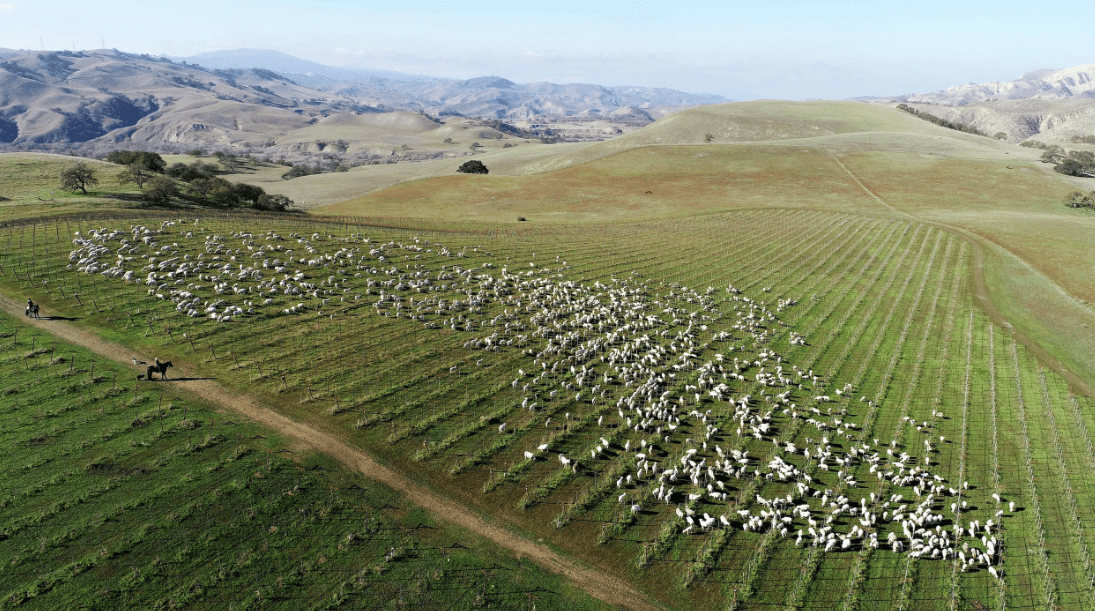 [The ideal version of our vineyard] “would enable grazing during spring and summer to better control summer grasses and incorporate organic nitrogen inputs nearly year-round. It would need a large off-farm grazing area for the rest of the year. Paicines Ranch in California is pretty close to perfect.”