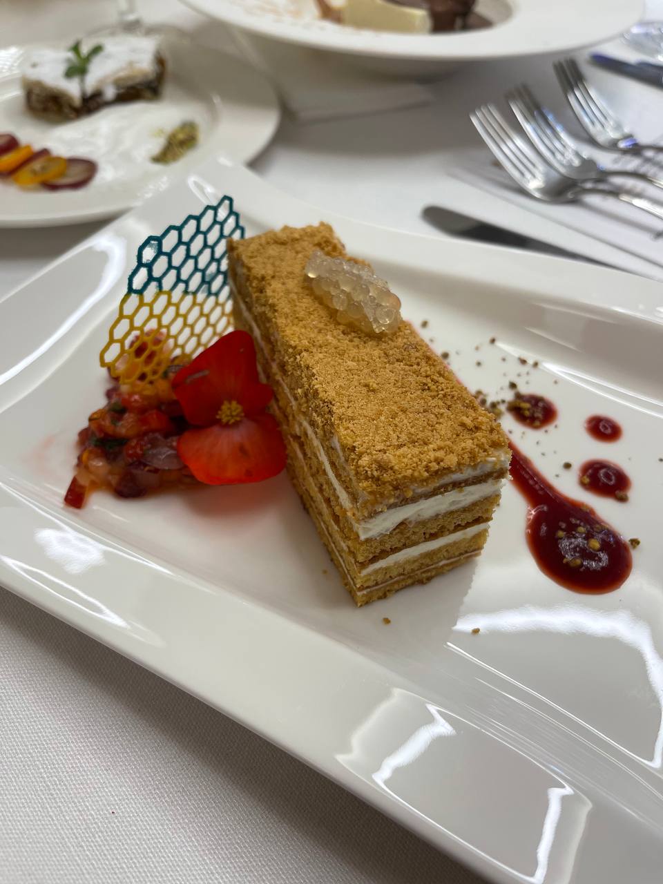 The main concept of the event in Odessa was the popularization of Ukrainian cuisine from different regions of Ukraine. The chefs presented the Crimean Tatar, Galician-Prycarpathian and Central Ukrainian cuisines. Guests were treated to author’s cocktails by Yevhen Komarov, and the menu of the evening perfectly illustrated the presented regions: sarma in grape leaves, pilaf with chickpeas, and author’s dessert “Nazly Kiz” by Zemfira Bektymirova – reflected the Crimean Tatar cuisine; potato kremzliks with lightly salted trout, pork fillet with banosh, cheese and porcini mushroom sauce, Lviv cheesecake with chocolate ice cream and fudge from Vitaliy Momotyuk and Maksym Prykhidko – demonstrated the Galician-Prycarpathian cuisine; saltison with three types of meat and horseradish sauce, Kyiv-style cutlet with potato and pea puree and cream and beetroot sauce and honey cake with notes of elderberry with fruits and berries and honey caviar performed by Andrii Magaletskyi and Oleksandr Yarosh – these acquainted the guests with the cuisine of Central Ukraine .